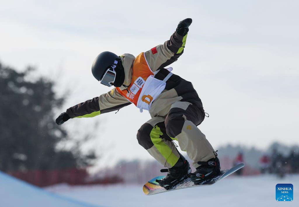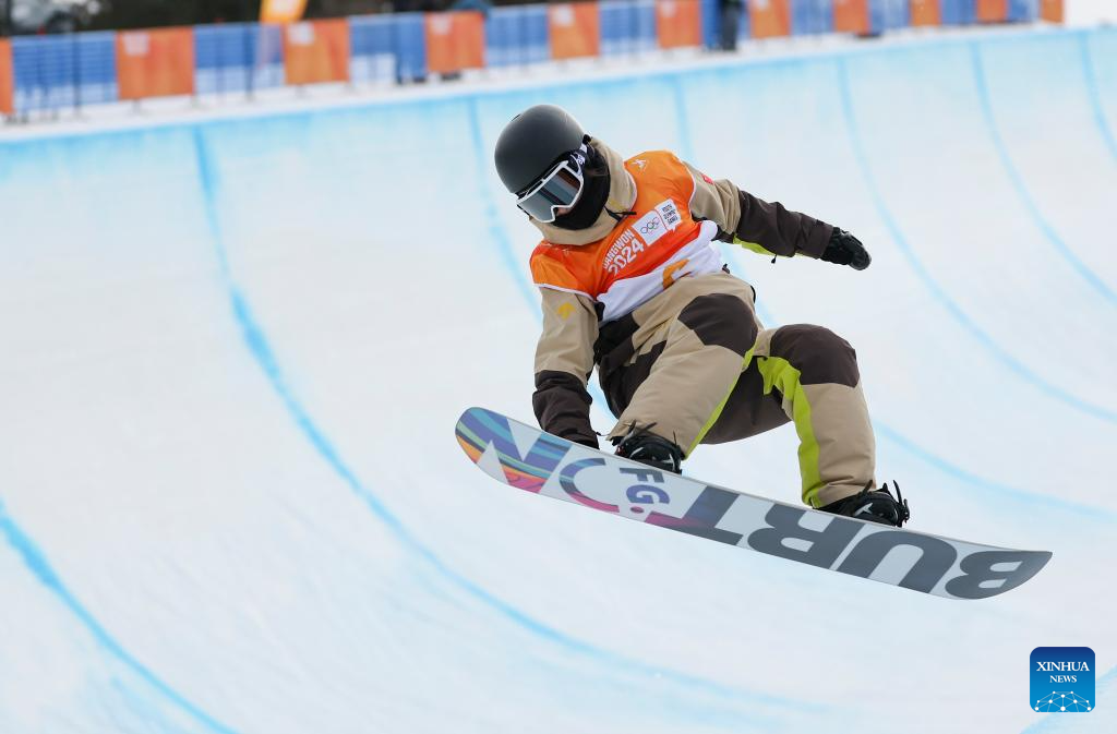 Ai Yanyi of China competes during the Women's Halfpipe qualification of snowboard event at the Gangwon 2024 Winter Youth Olympic Games in Hoengseong, South Korea, Feb. 1, 2024. (Xinhua/Hu Huhu)