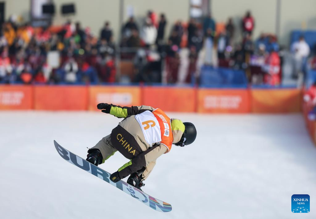 Ai Yanyi of China competes during the Women's Halfpipe Final of snowboard event at the Gangwon 2024 Winter Youth Olympic Games in Hoengseong, South Korea, Feb. 1, 2024. (Xinhua/Hu Huhu)