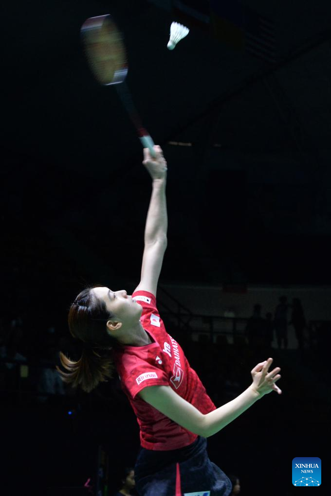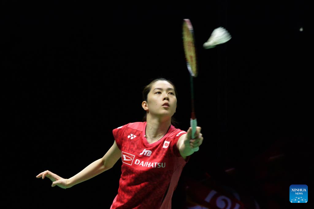 Japan's Ohori Aya returns a shot to Thailand's Busanan Ongbamrungphan during the women's singles semifinal at the Thailand Masters 2024 badminton tournament in Bangkok, Thailand, Feb. 3, 2024. (Xinhua/Rachen Sageamsak)