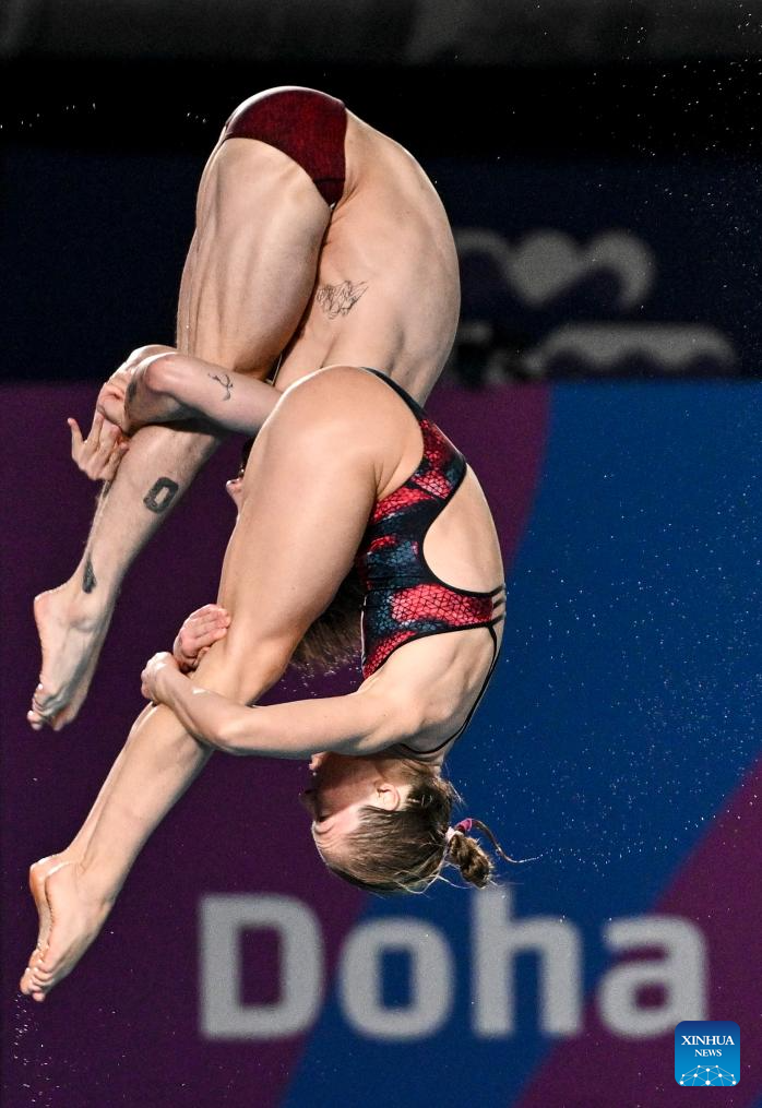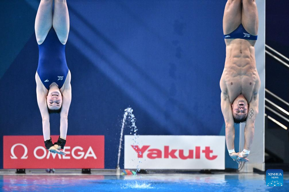 Andrea Spendolini Sirieix (L)/Thomas Daley of Team Britain compete during the mixed 3m & 10m team final of diving at the World Aquatics Championships 2024 in Doha, Qatar, Feb. 2, 2024. (Xinhua/Xue Yuge)