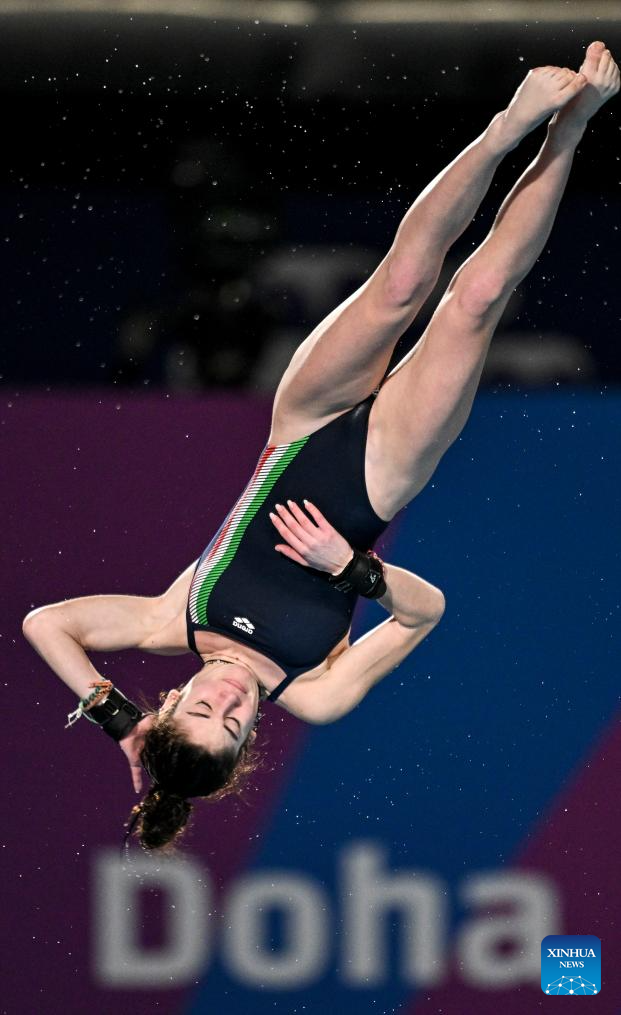 Irene Pesce of Team Italy competes during the mixed 3m & 10m team final of diving at the World Aquatics Championships 2024 in Doha, Qatar, Feb. 2, 2024. (Xinhua/Xia Yifang)