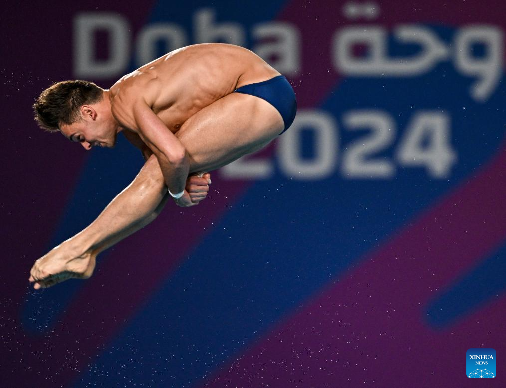 Thomas Daley of Team Britain competes during the mixed 3m & 10m team final of diving at the World Aquatics Championships 2024 in Doha, Qatar, Feb. 2, 2024. (Xinhua/Xia Yifang)