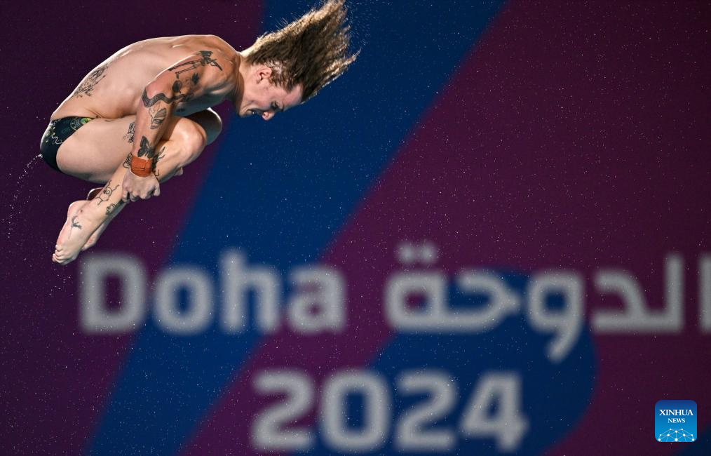 Cassiel Rousseau of Team Australia competes during the mixed 3m & 10m team final of diving at the World Aquatics Championships 2024 in Doha, Qatar, Feb. 2, 2024. (Xinhua/Xia Yifang)