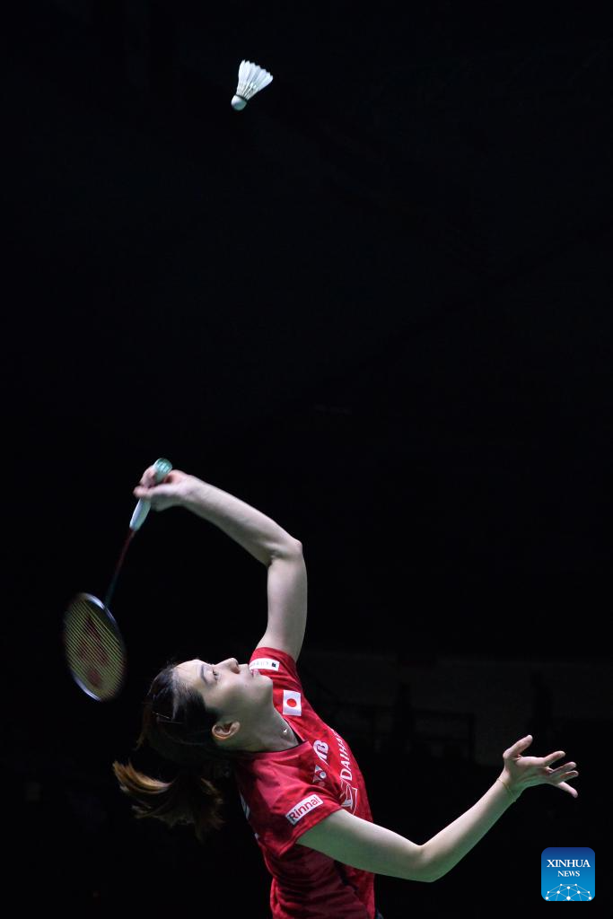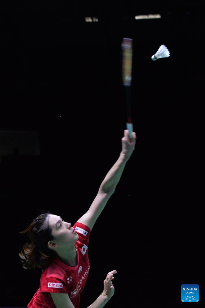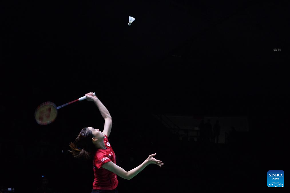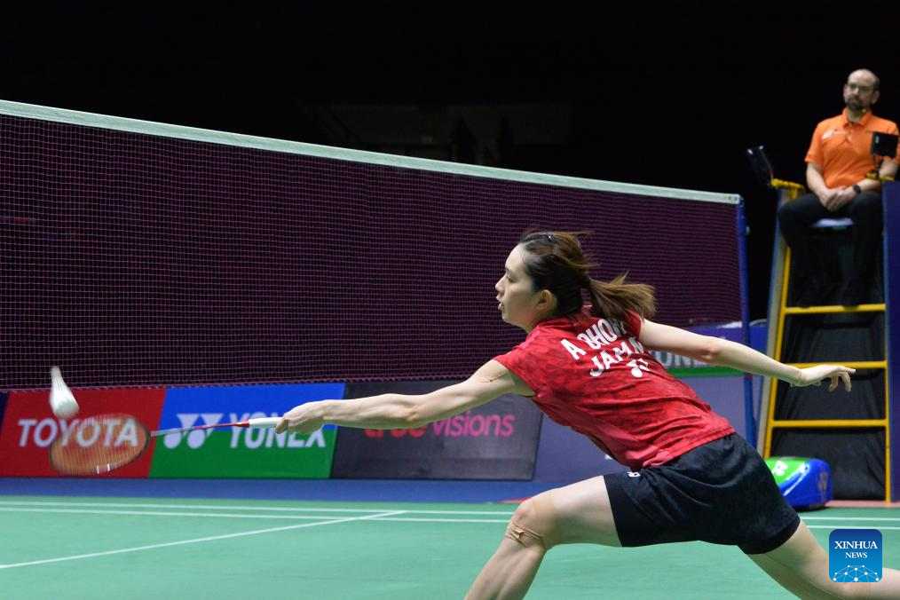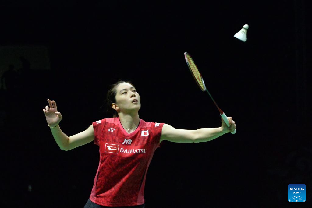 Ohori Aya of Japan returns a shot to Supanida Katethong of Thailand during their women's singles final match at the Thailand Masters 2024 badminton tournament in Bangkok, Thailand, Feb. 4, 2024. (Xinhua/Rachen Sageamsak)