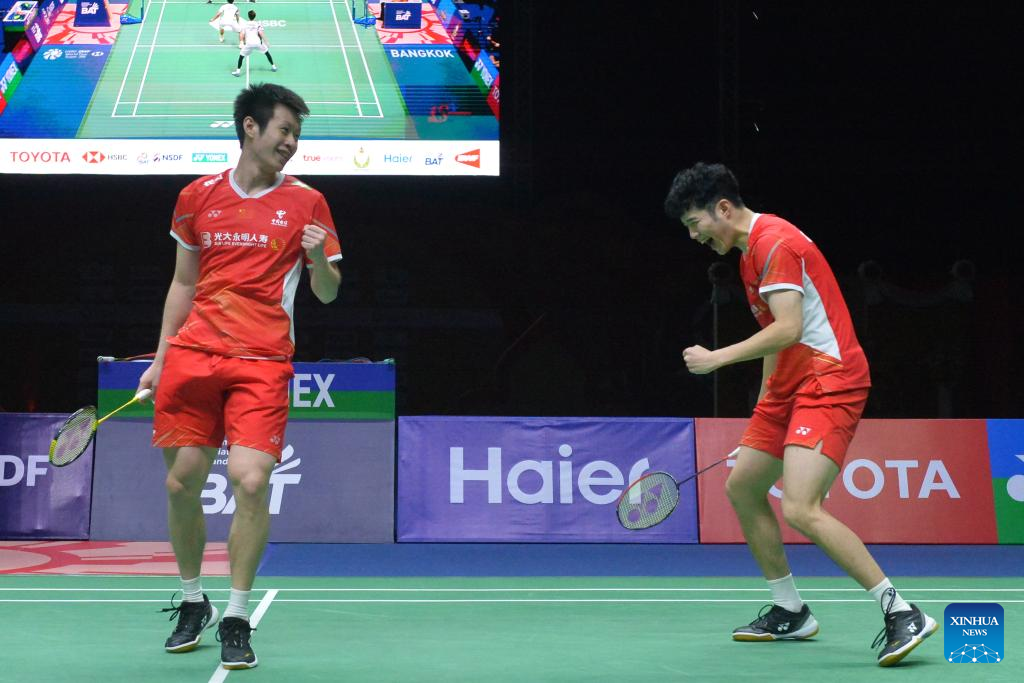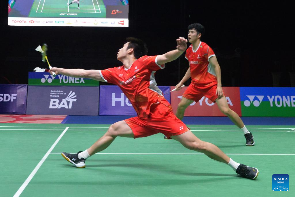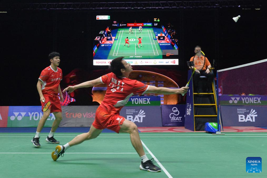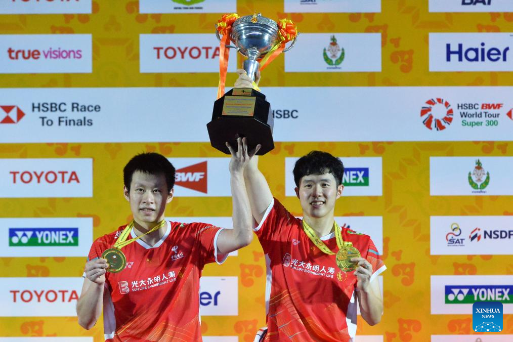 BANGKOK, Feb. 4 (Xinhua) -- China's He Jiting and Ren Xiangyu came from behind to upset home pair Peeratchai Sukphun and Pakkapon Teeraratsakul for the men's doubles title at the badminton Thailand Masters here on Sunday.