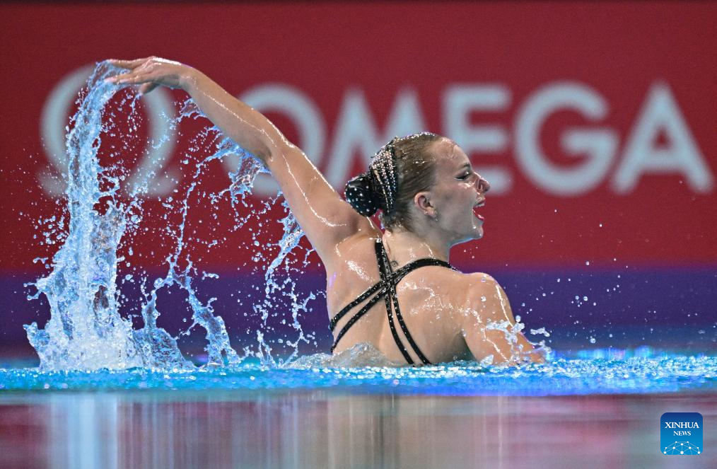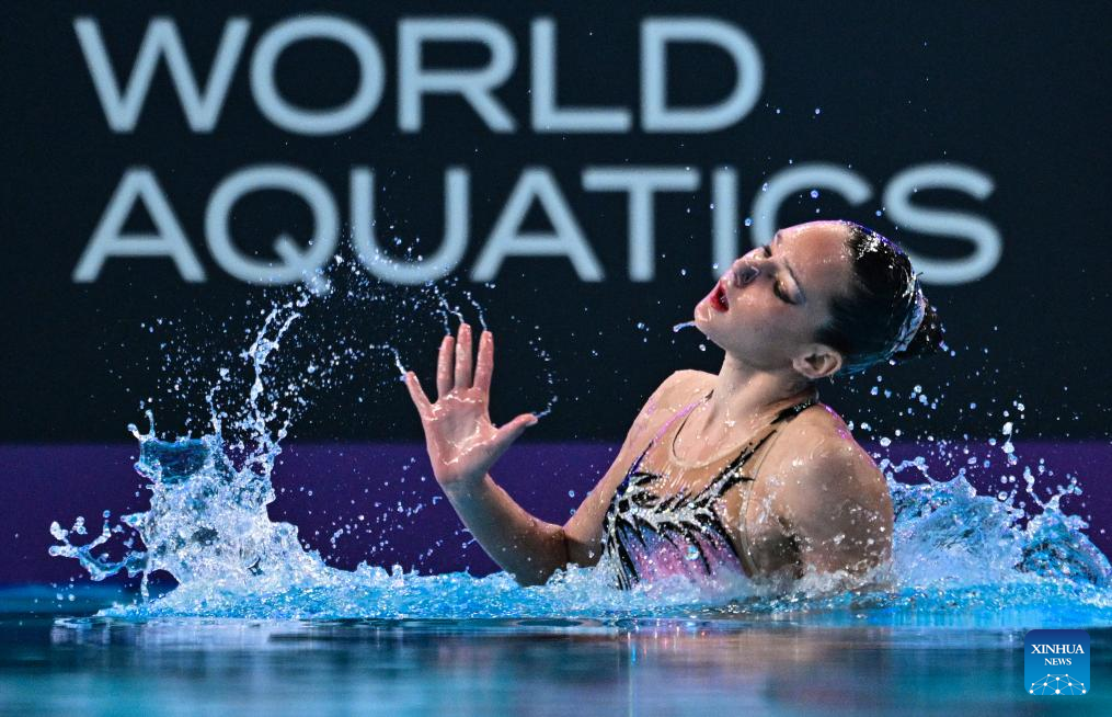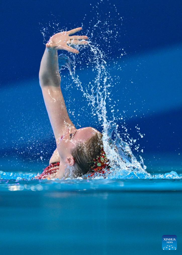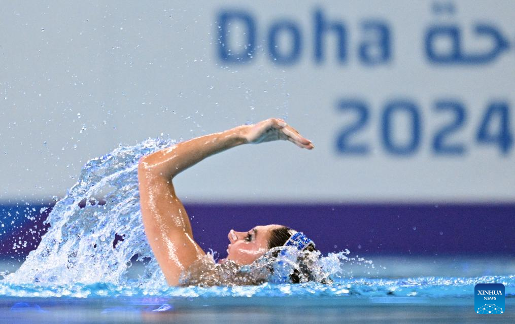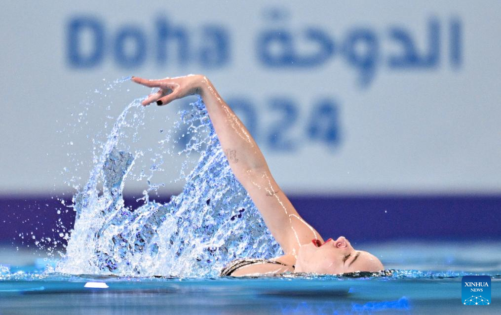 Viktoria Reichova of Slovakia competes during the final of women's solo free of artistic swimming at the World Aquatics Championships in Doha, Qatar, on Feb. 6, 2024. (Xinhua/Xia Yifang)