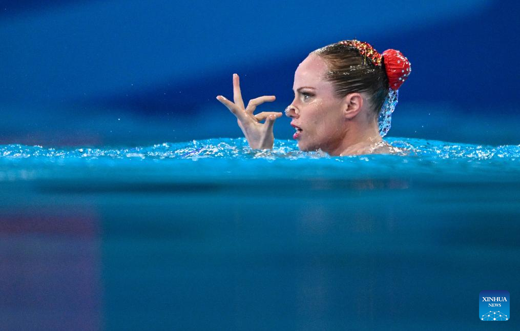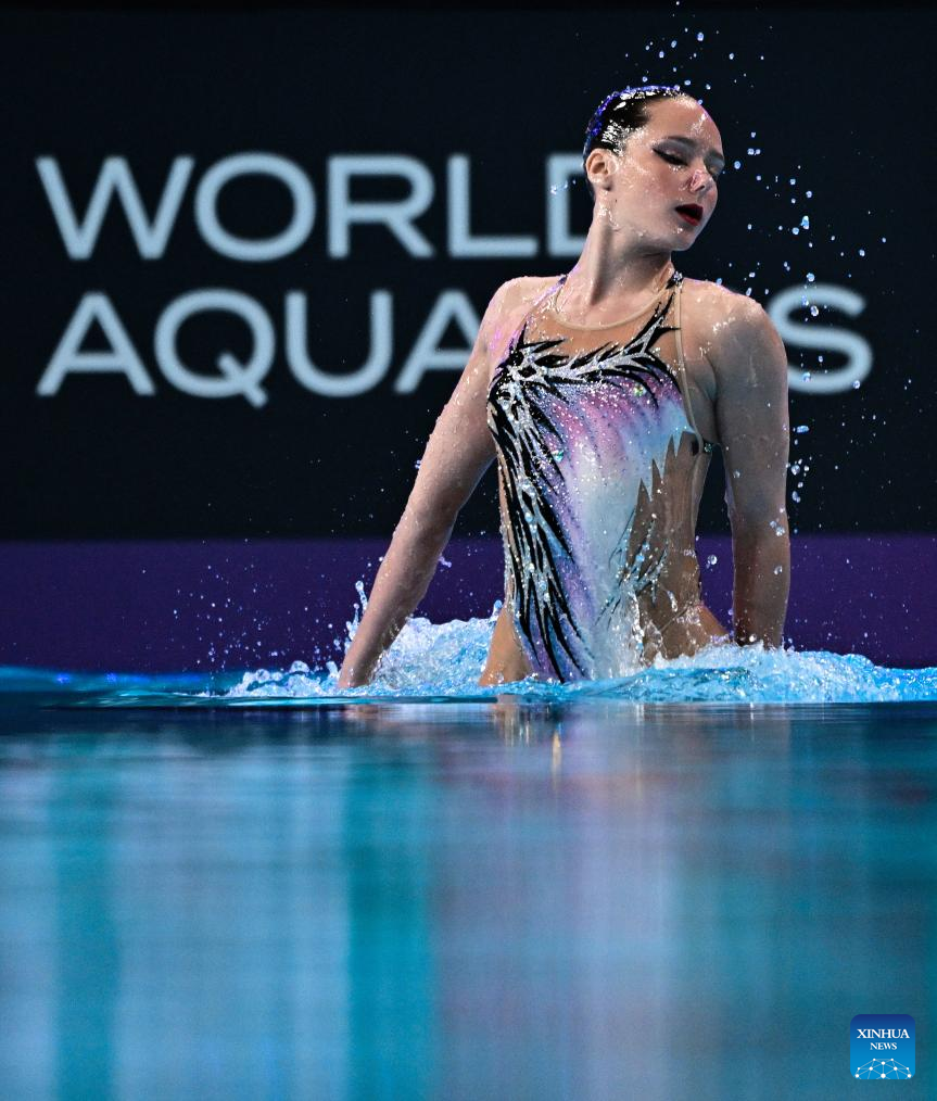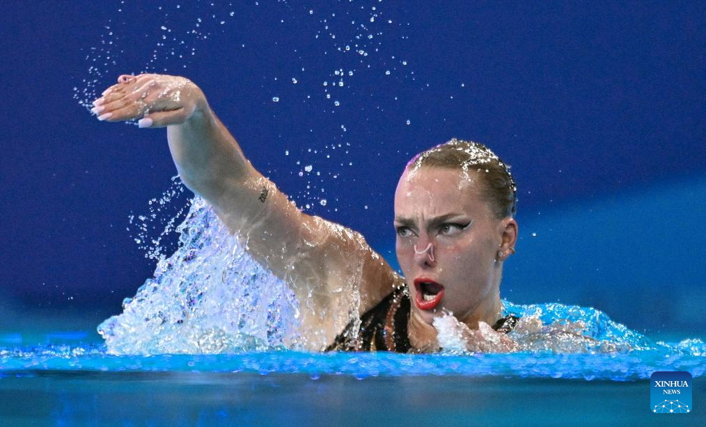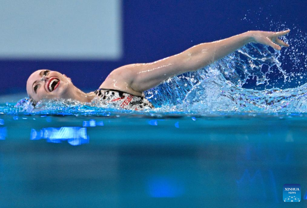 Viktoria Reichova of Slovakia competes during the final of women's solo free of artistic swimming at the World Aquatics Championships in Doha, Qatar, on Feb. 6, 2024. (Xinhua/Xia Yifang)