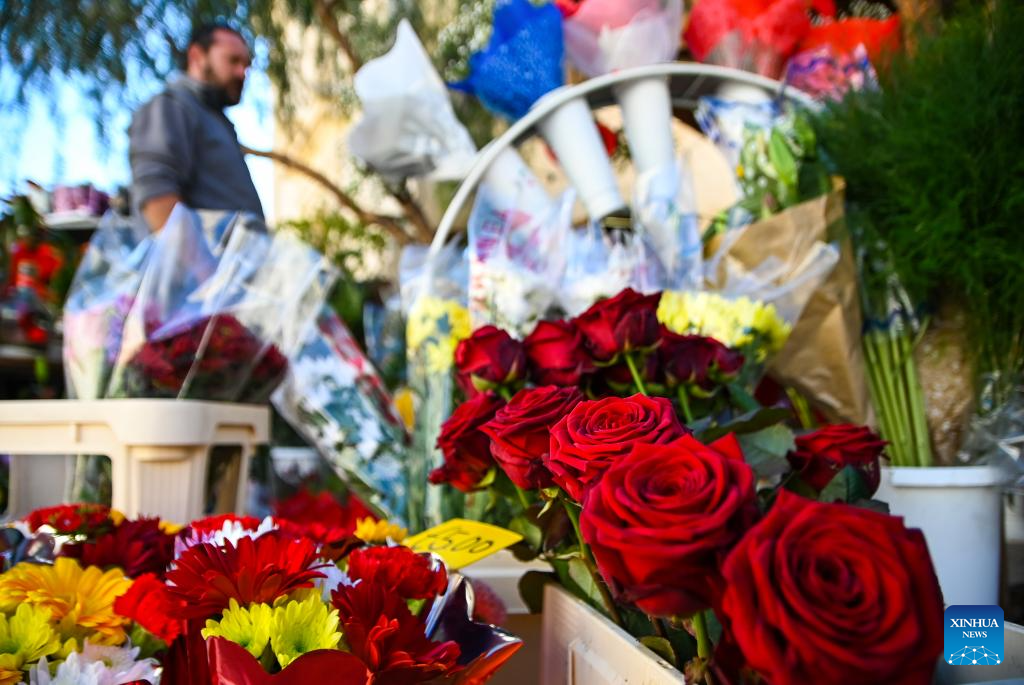 This photo taken on Feb. 14, 2024 shows a flower shop with red roses on Valentine's Day in Gharghur, Malta. (Photo by Jonathan Borg/Xinhua)