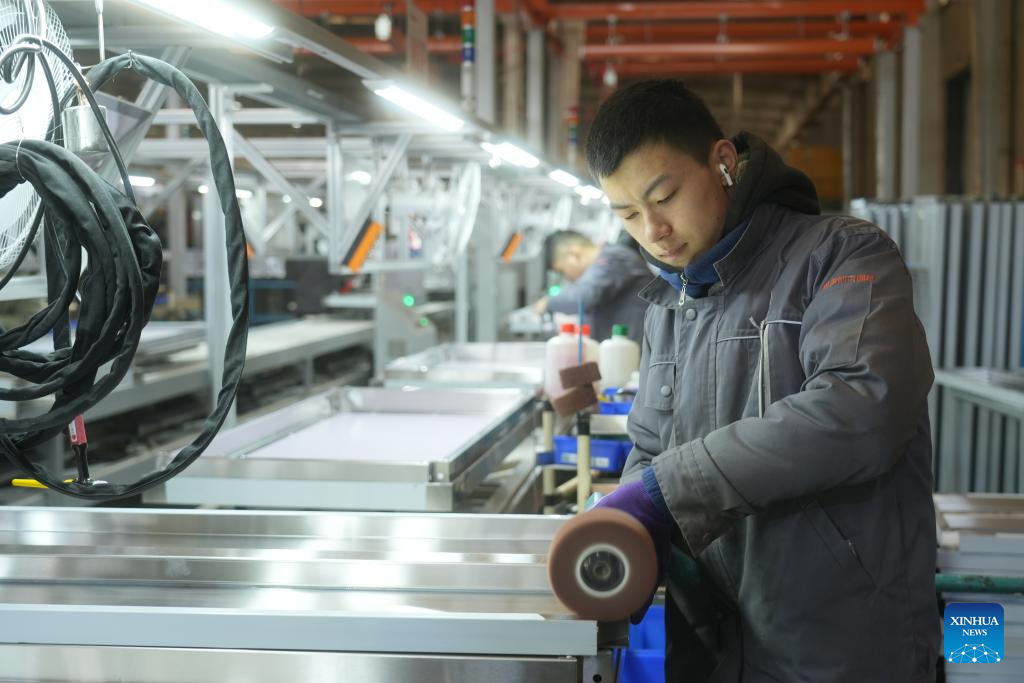 A worker makes kitchenware at the factory of a kitchenware enterprise in Binzhou, east China's Shandong Province, Feb. 7, 2024. (Xinhua/Gao Tian)