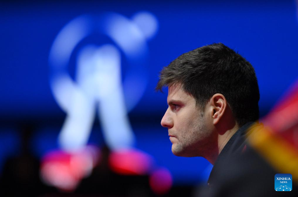 Dimitrij Ovtcharova of Germany watches the match during the men's team quarterfinal between Germany and Chinese Taipei at the ITTF World Team Table Tennis Championships Finals Busan 2024 in Busan, South Korea, Feb. 23, 2024. (Xinhua/Tao Xiyi)