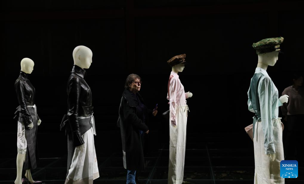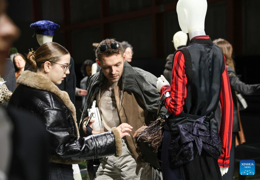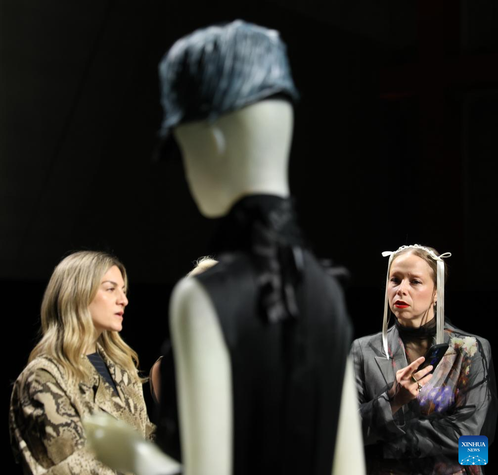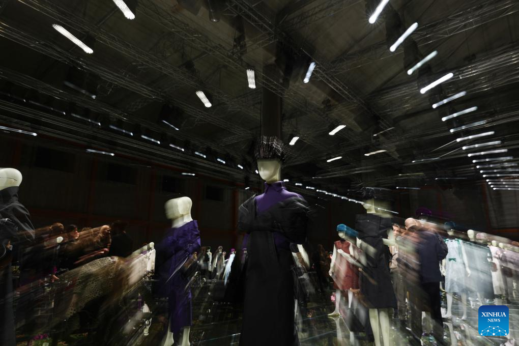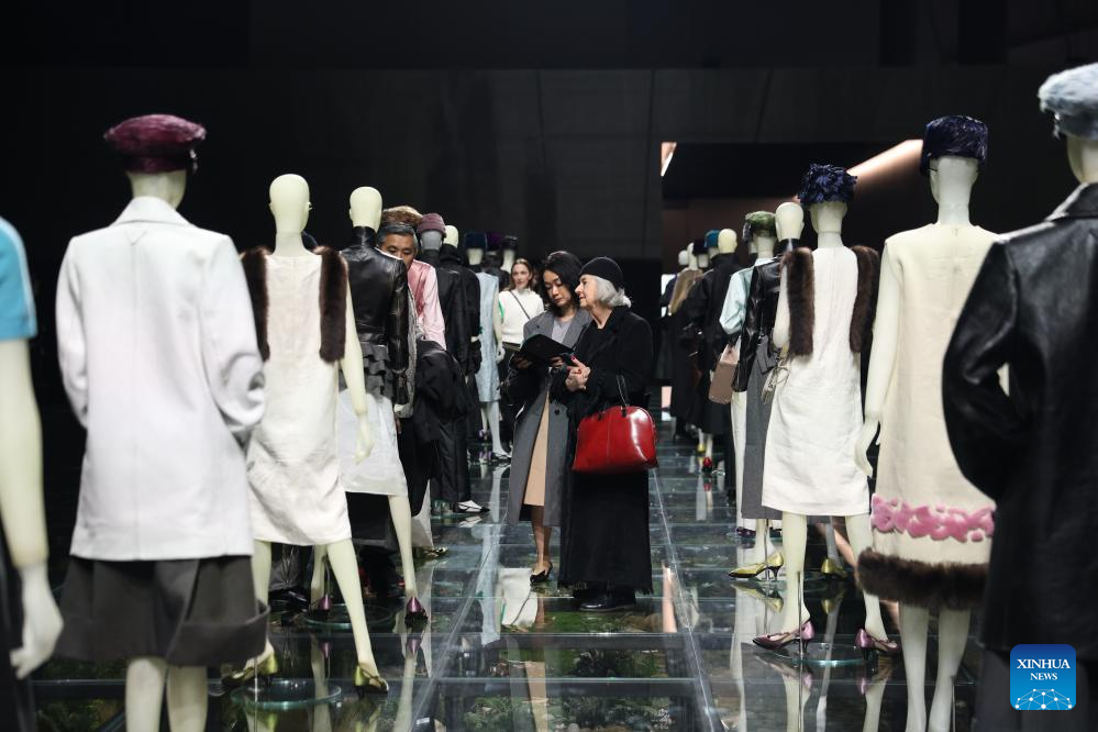 People view creations of Prada women's Fall/Winter 2024 collections at Prada's re-see event during Milan Fashion Week in Milan, Italy, Feb. 23, 2024. (Xinhua/Li Jing)