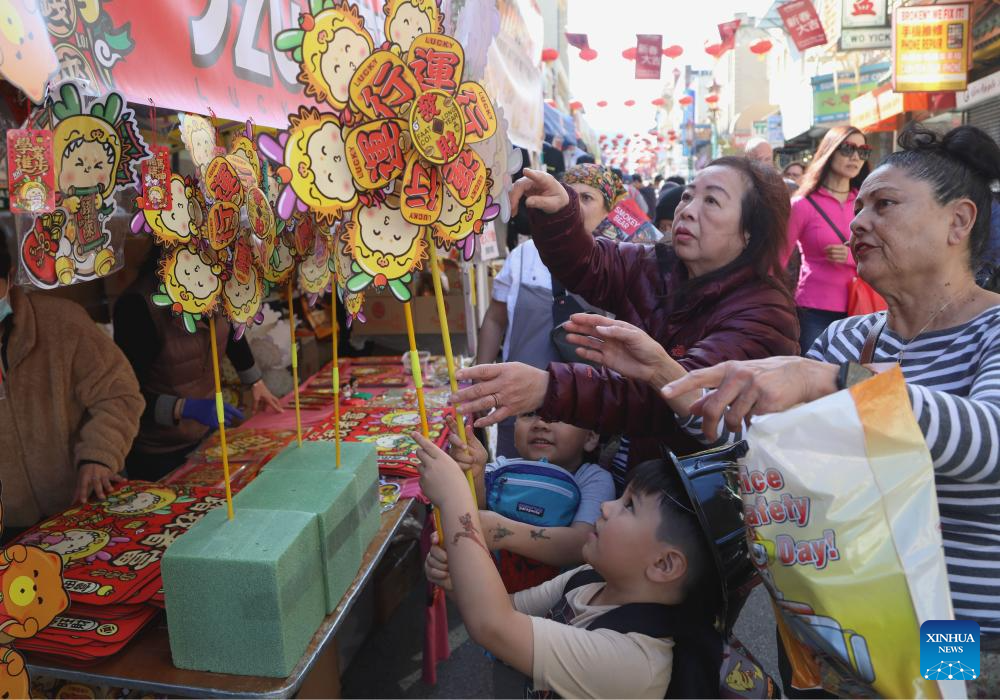 People take part in activities in celebration of the Lantern Festival at the Chinatown in San Francisco, the United States, Feb. 24, 2024. (Photo by Liu Yilin/Xinhua)
