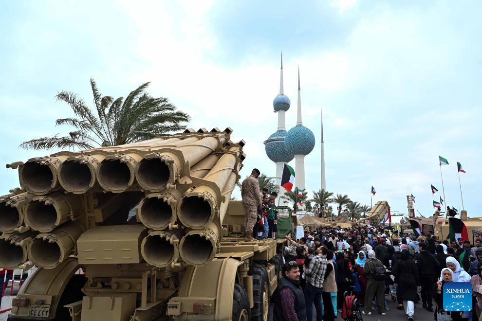 An army parade is seen during the celebration in Capital Governorate, Kuwait, Feb. 25, 2024. Kuwaitis celebrate their national and liberation days on Feb. 25 and 26 every year. (Photo by Asad/Xinhua)