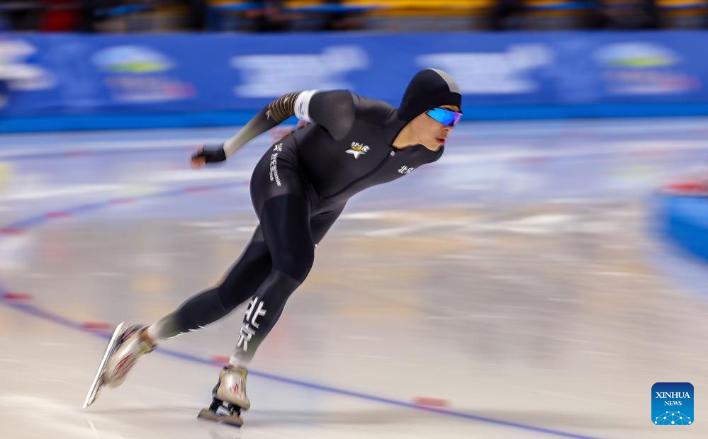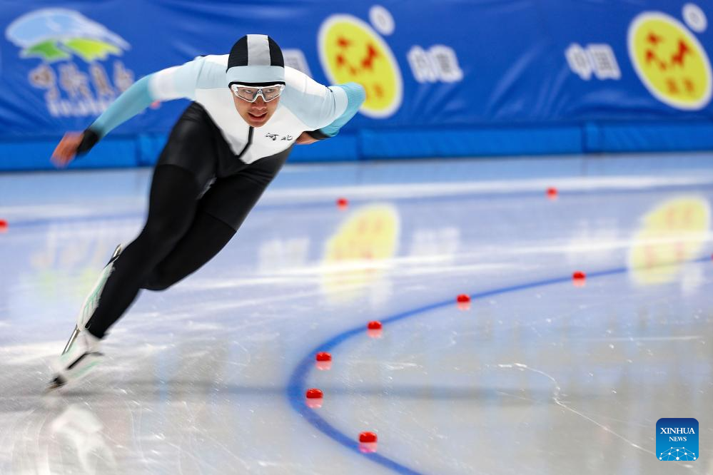 Liu Hanbin of Beijing competes during the junior men's 1500m A final of speed skating event at the China's 14th National Winter Games in Hulun Buir, north China's Inner Mongolia Autonomous Region, Feb. 26, 2024. (Xinhua/Jiang Fan)