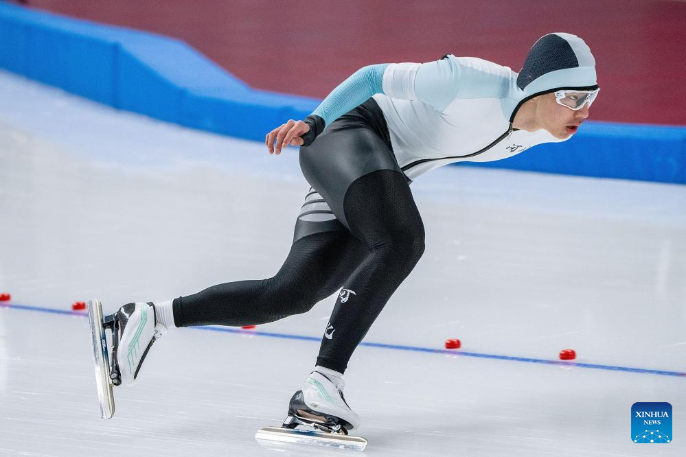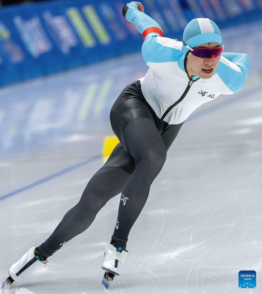 Li Wenhao of Hebei competes during the junior men's 1500m A final of speed skating event at the China's 14th National Winter Games in Hulun Buir, north China's Inner Mongolia Autonomous Region, Feb. 26, 2024. (Xinhua/Chen Xinbo)