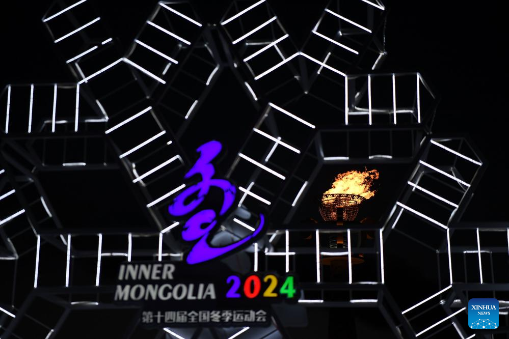 The Cauldron of the China's 14th National Winter Games is seen prior to the closing ceremony of the China's 14th National Winter Games in Hulun Buir, north China's Inner Mongolia Autonomous Region, Feb. 27, 2024. (Xinhua/Deng Hua)