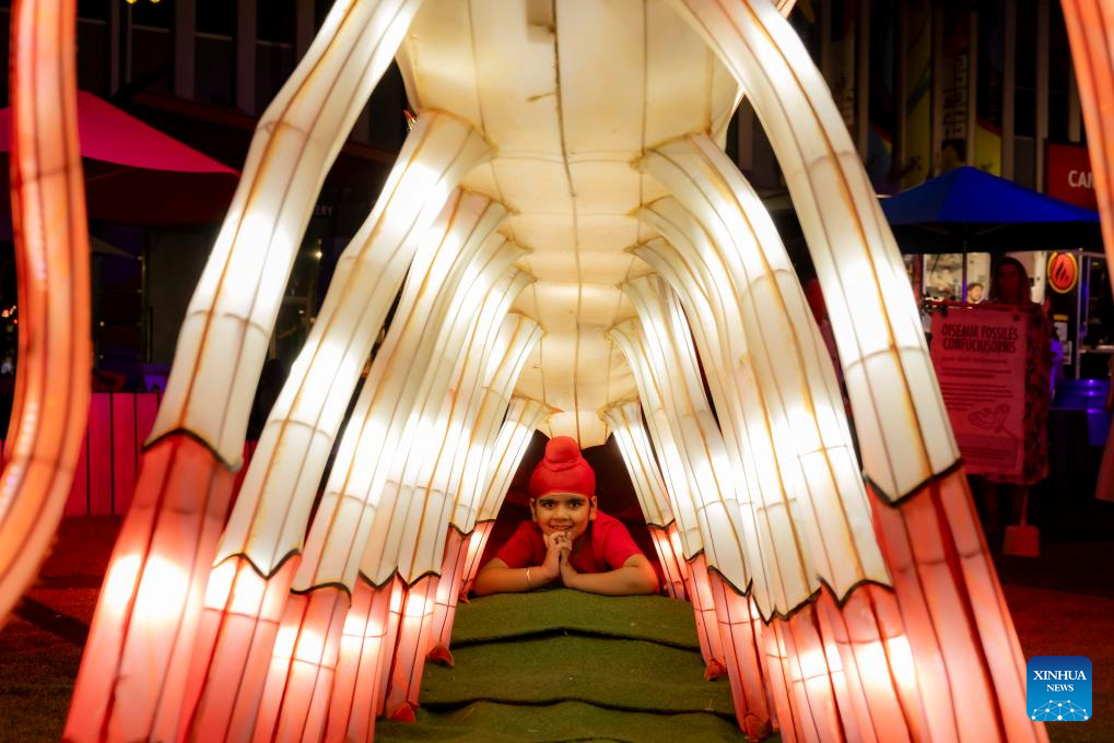 A child visits illuminated installations at the Enlighten Festival in Canberra, Australia, March 1, 2024. The annual Enlighten Festival is held here from March 1 to 11. (Photo by Chu Chen/Xinhua)