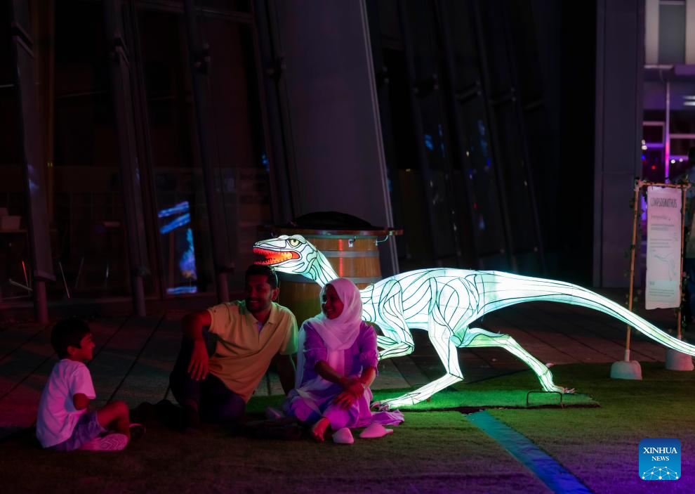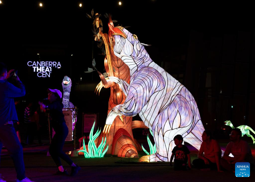 People visit illuminated installations at the Enlighten Festival in Canberra, Australia, March 1, 2024. The annual Enlighten Festival is held here from March 1 to 11. (Photo by Chu Chen/Xinhua)
