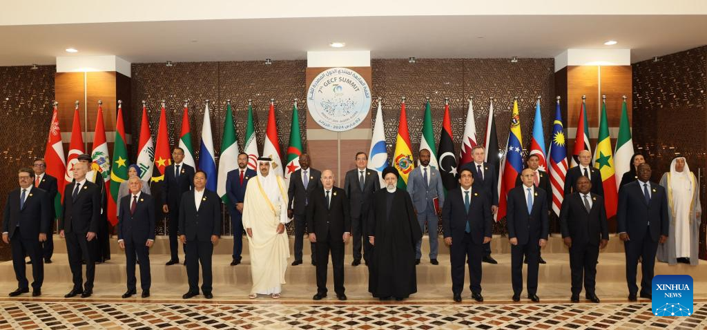 Participants attending the 7th Summit of the Gas Exporting Countries Forum (GECF) pose for a group photo in Algiers, Algeria, March 2, 2024. (Algerian Presidency/Handout via Xinhua)