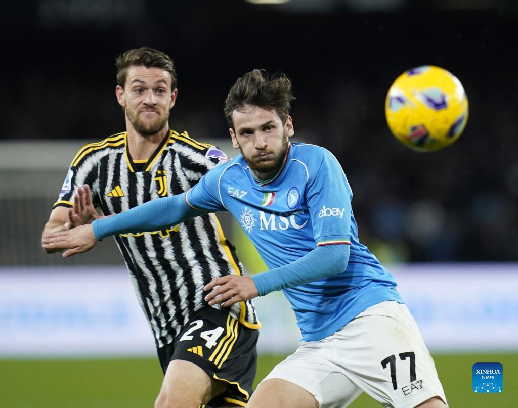 ROME, March 3 (Xinhua) -- Napoli snatched a crucial win in their race for the Champions League spot as Giacomo Raspadori's last-gasp score helped the Serie A defending champions beat Juventus 2-1 on Sunday.