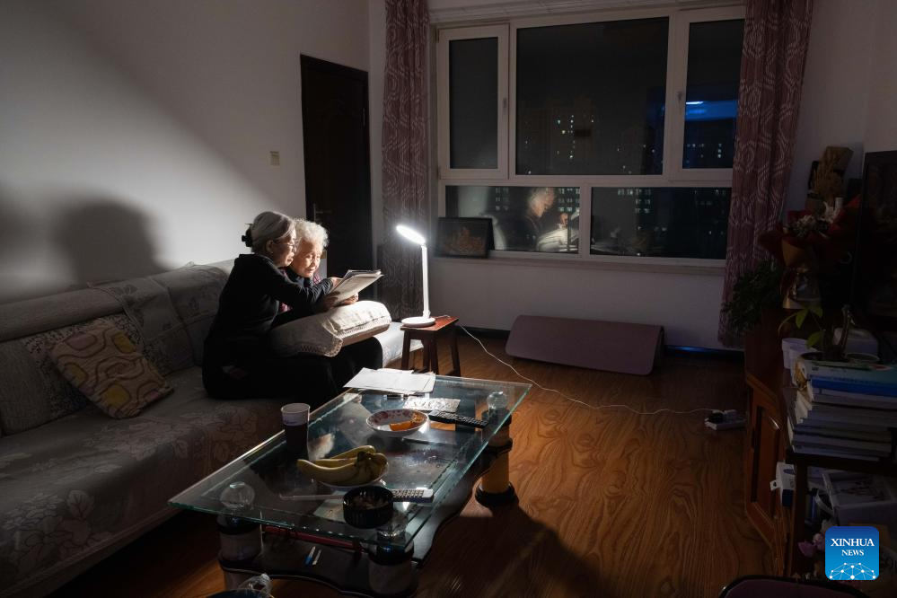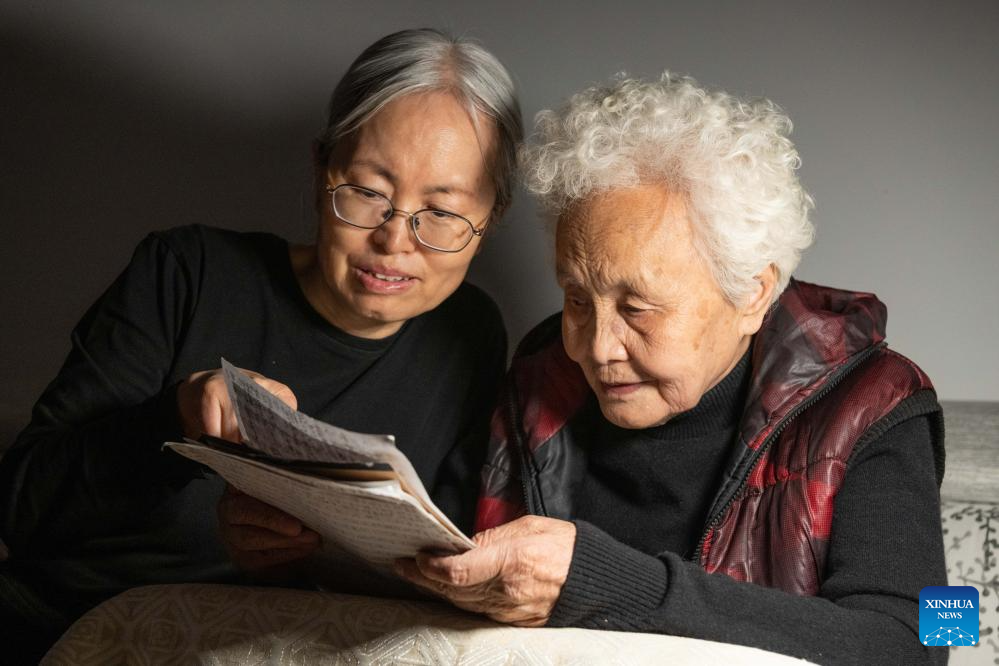 Jiang Shumei (R) checks a draft with her daughter Zhang Ailing at home in Beilin District of Suihua City, northeast China's Heilongjiang Province, March 5, 2024.(Xinhua/Xie Jianfei)