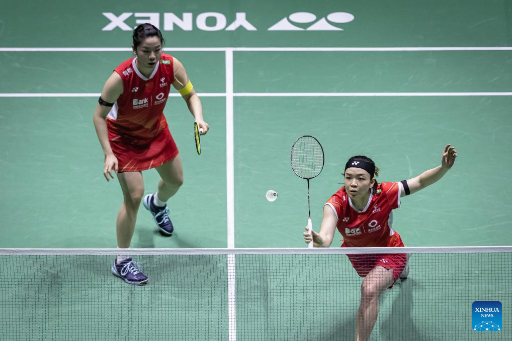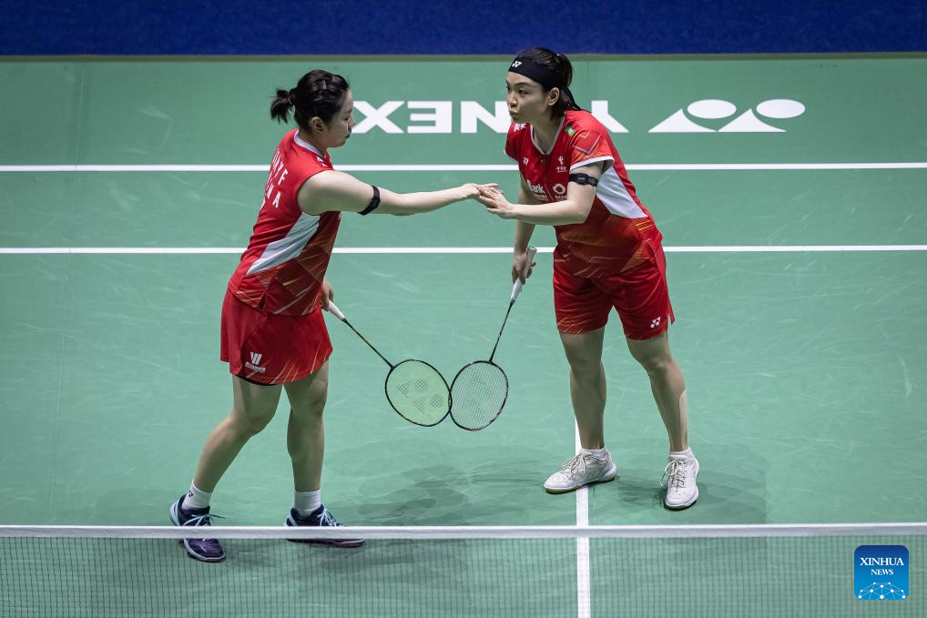 Liu Shengshu (R)/Tan Ning of China compete during the women's doubles semifinal match between Liu Shengshu/Tan Ning of China and Matsuyama Nami/Shida Chiharu of Japan at the Yonex French Open Badminton tournament in Paris, France, March 9, 2024. (Photo by Aurelien Morissard/Xinhua)