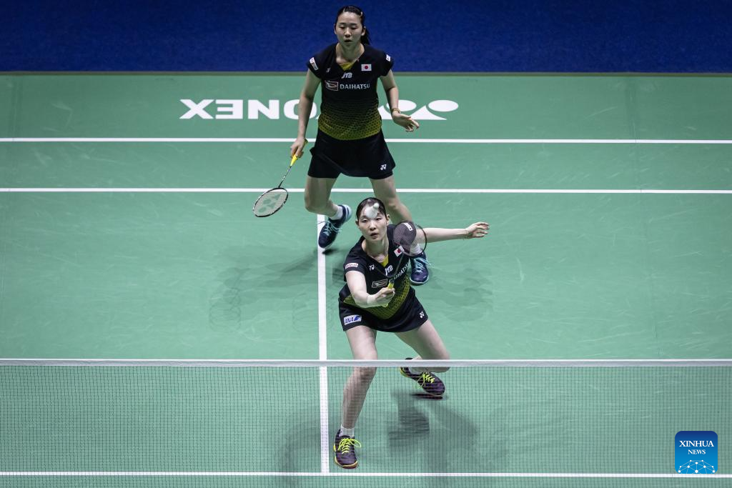 Matsumoto Mayu (R)/Nagahara Wakana of Japan compete during the women's doubles semi-final match between Chen Qingchen/Jia Yifan of China and Matsumoto Mayu/Nagahara Wakana of Japan at the Yonex French Open Badminton tournament in Paris, France, March 9, 2024. (Photo by Aurelien Morissard/Xinhua)