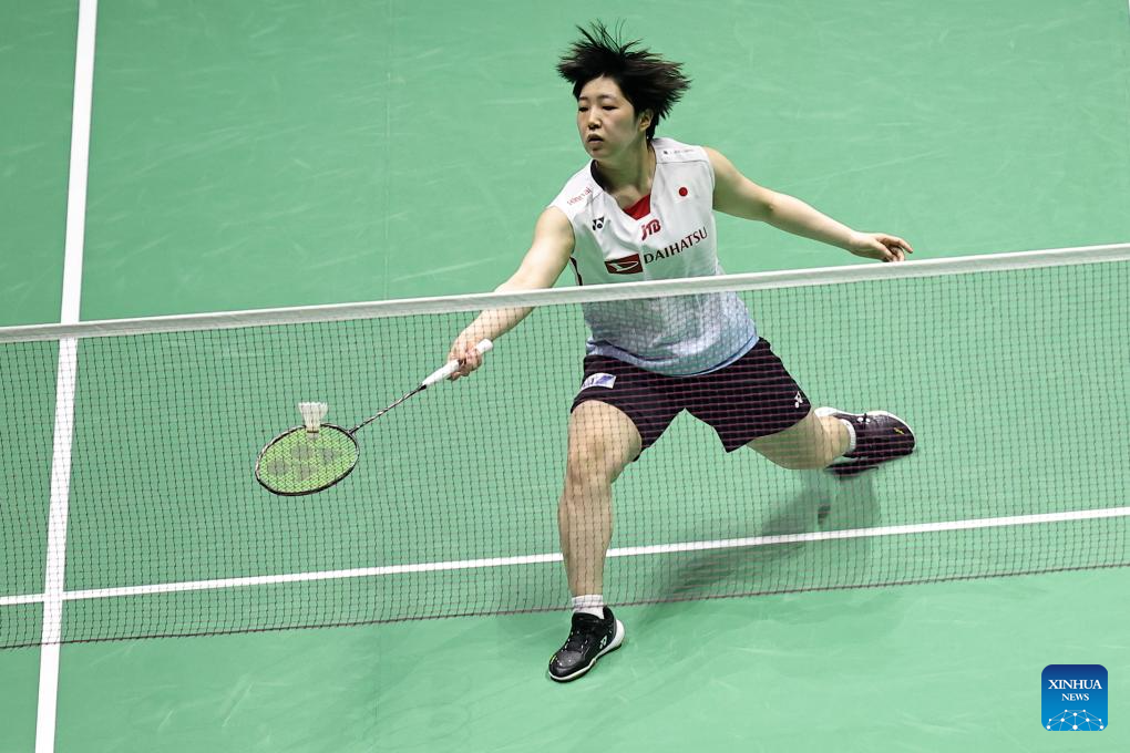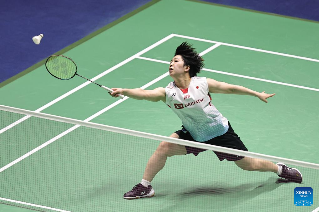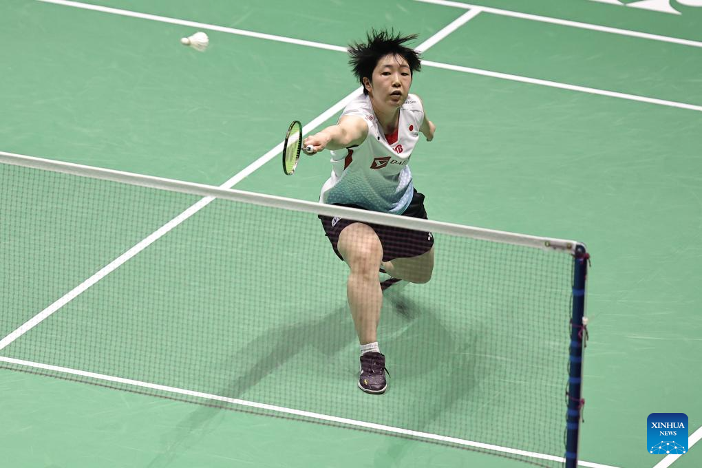 Yamaguchi Akane of Japan hits a return during the women's singles final match against An Se Young of South Korea at French Open Badminton tournament in Paris, France, March 10, 2024. (Photo by Aurelien Morissard/Xinhua)
