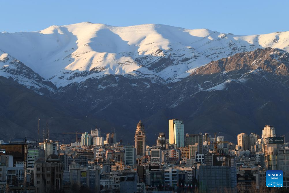 Snow mountains are seen from Tehran, Iran, March 9, 2024. (Xinhua/Shadati)