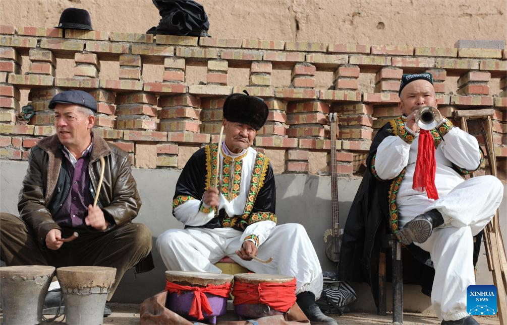 Performers play music in Kuqa City in northwest China's Xinjiang Uygur Autonomous Region, March 15, 2024.(Xinhua/Zhang Yu)