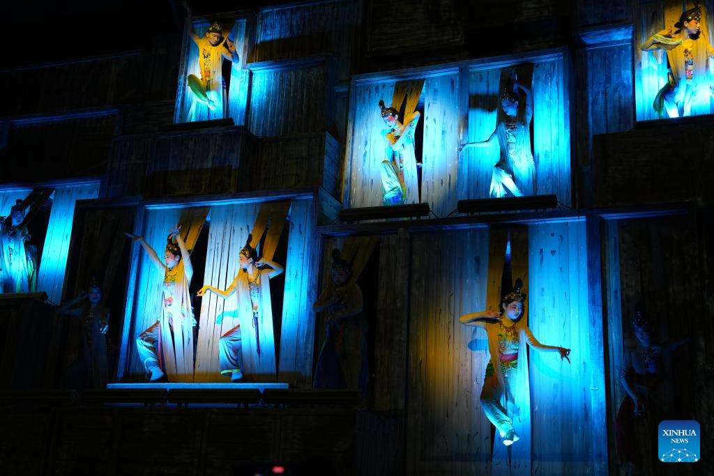 Actresses perform a drama in Dunhuang, northwest China's Gansu Province, March 16, 2024. Dunhuang has received a total of 336,000 tourists from Jan. 1 to March 16 this year, an increase of 86.6 percent over the same period in 2023. (Xinhua/Zhang Zhimin)