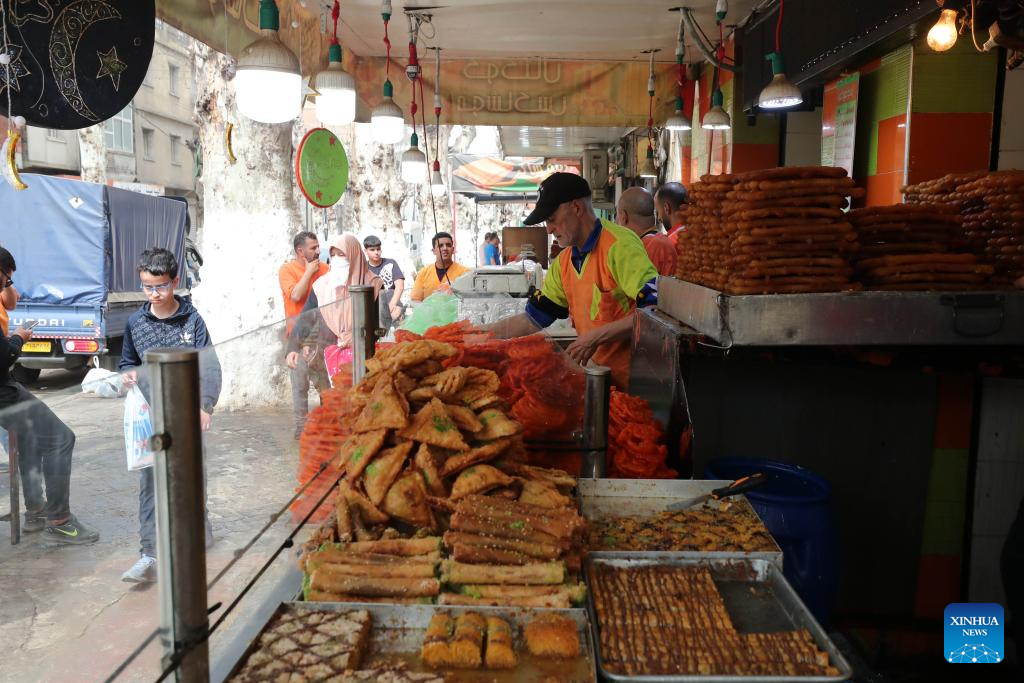 Sweets are for sale at a market during Ramadan in Amman, Jordan, on March 20, 2024. (Photo by Mohammad Abu Ghosh/Xinhua)
