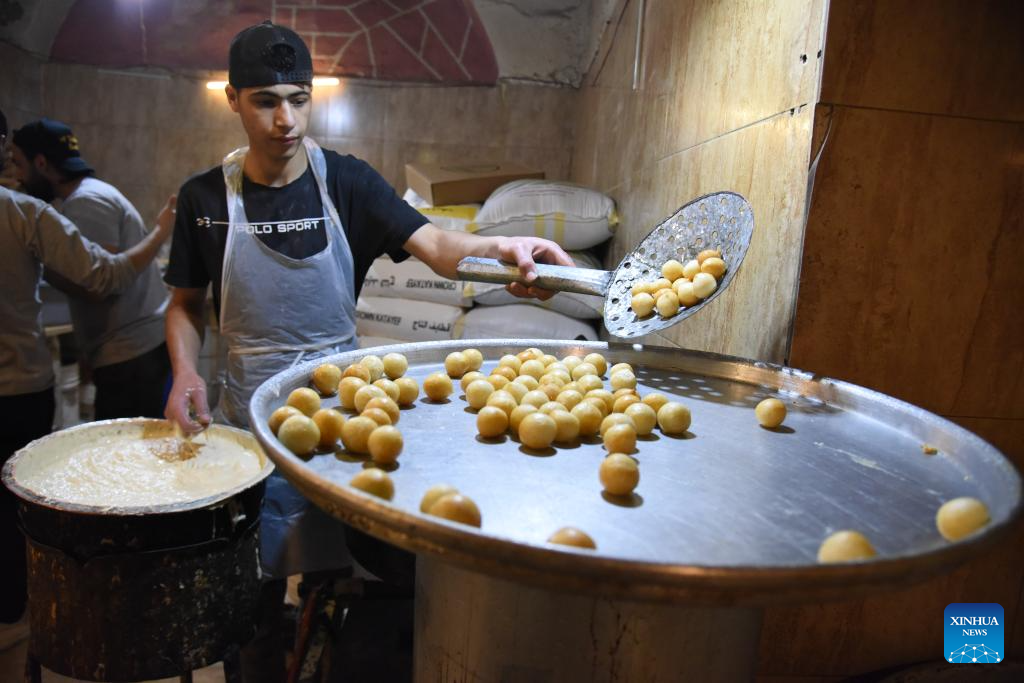 People prepare traditional dessert known as Zalabia during Ramadan in Boufarik, Algeria, on March 20, 2024. (Xinhua)