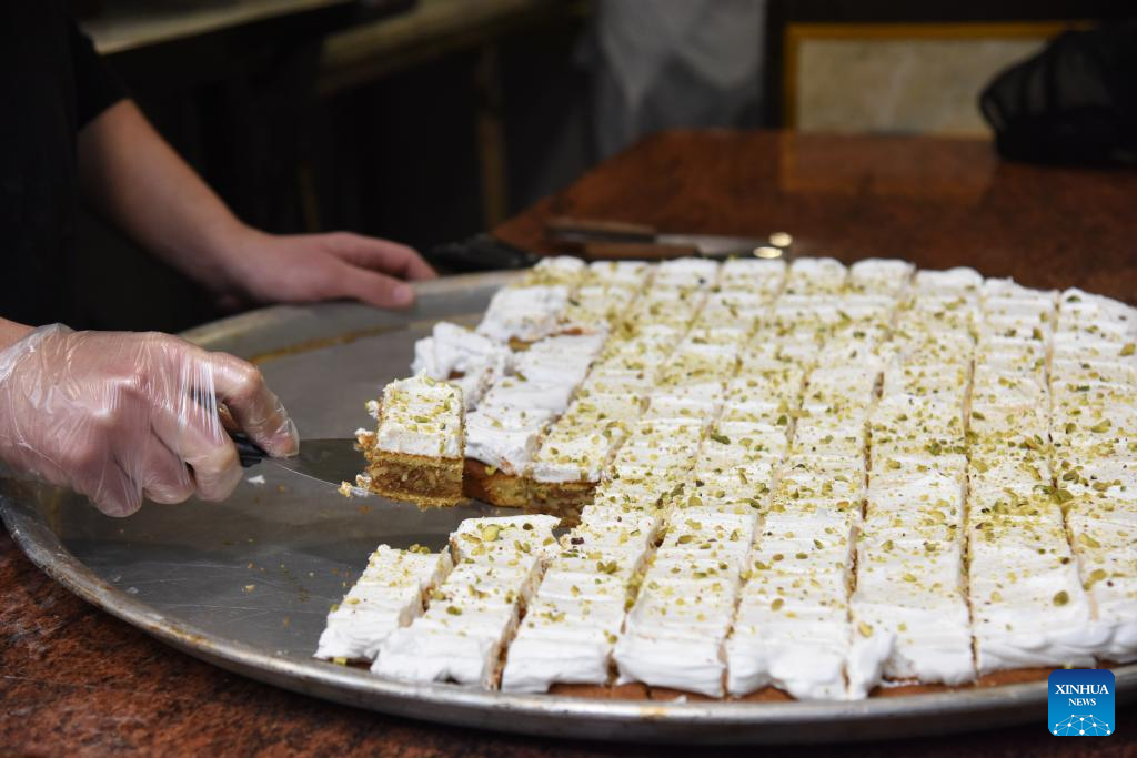 A vendor prepares sweets during the Ramadan in Tripoli, Lebanon, March 19, 2024. (Photo by Khaled Habashiti/Xinhua)