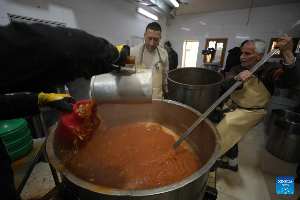 Palestinian cooks prepare charitable meals during Ramadan in the West Bank city of Hebron, on March 20, 2024. (Photo by Mamoun Wazwaz/Xinhua)