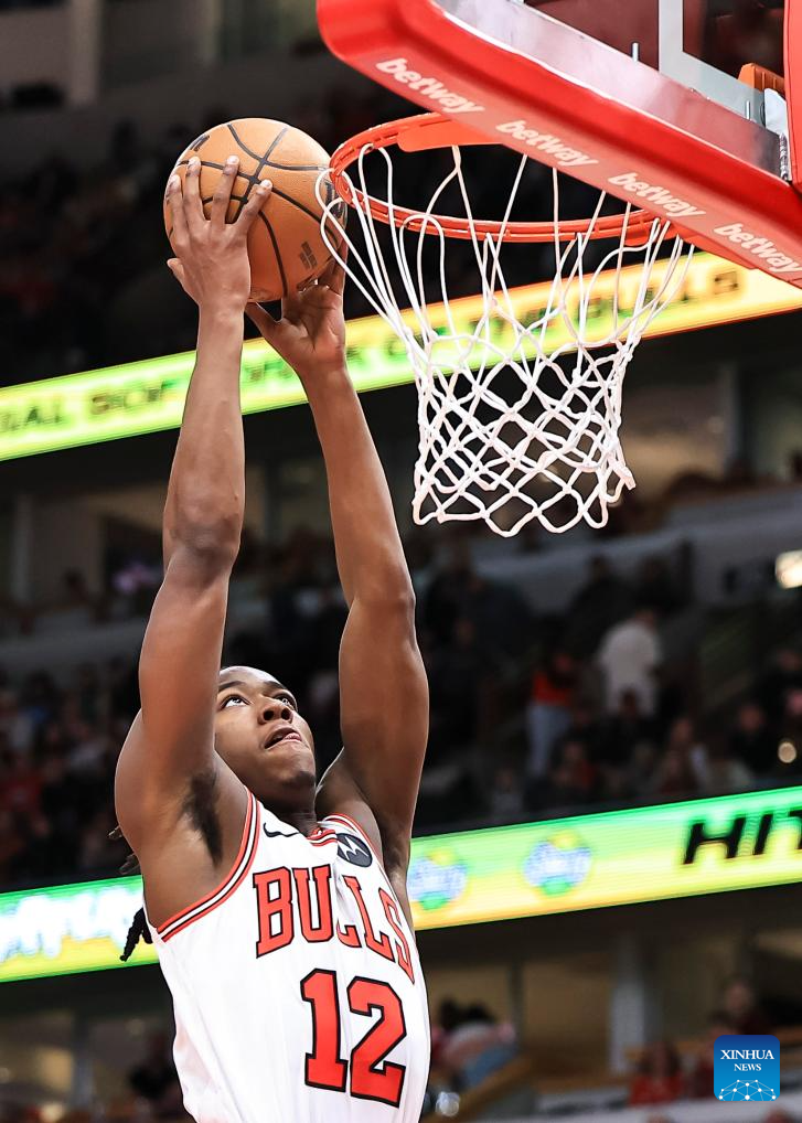 Chicago Bulls guard Ayo Dosunmu dunks during NBA regular season game between Boston Celtics and Chicago Bulls in Chicago, the United States on March 23, 2024. (Photo by Joel Lerner/Xinhua)