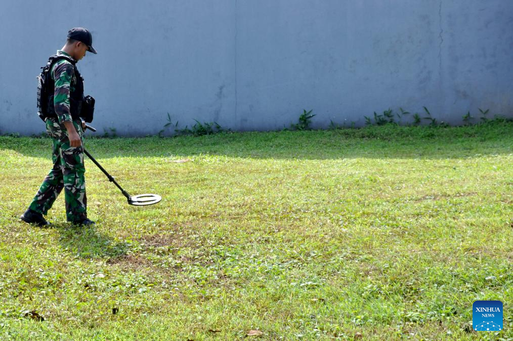 A member of the Explosive Ordnance Devices Unit of Indonesian Army scans for explosive device at a residential area near the site of an explosion in Bogor, West Java, Indonesia, March 31, 2024. The explosion rocked a military complex near Indonesia's capital city Jakarta on Saturday evening. (Photo by Rahmat Dian P./Xinhua)