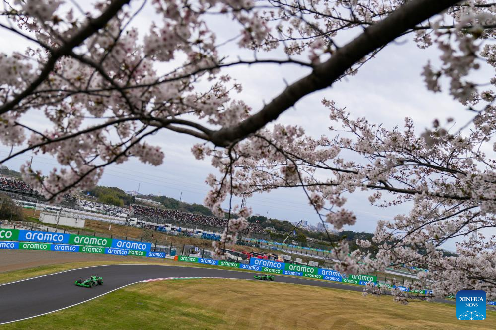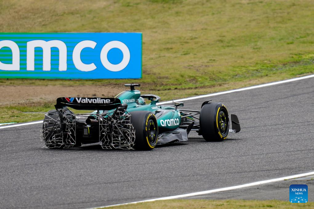 Aston Martin's driver Lance Stroll of Canada drives his car during the practice session of Formula One Japanese Grand Prix in Suzuka, Japan, April 5, 2024. (Xinhua/Zhang Xiaoyu)