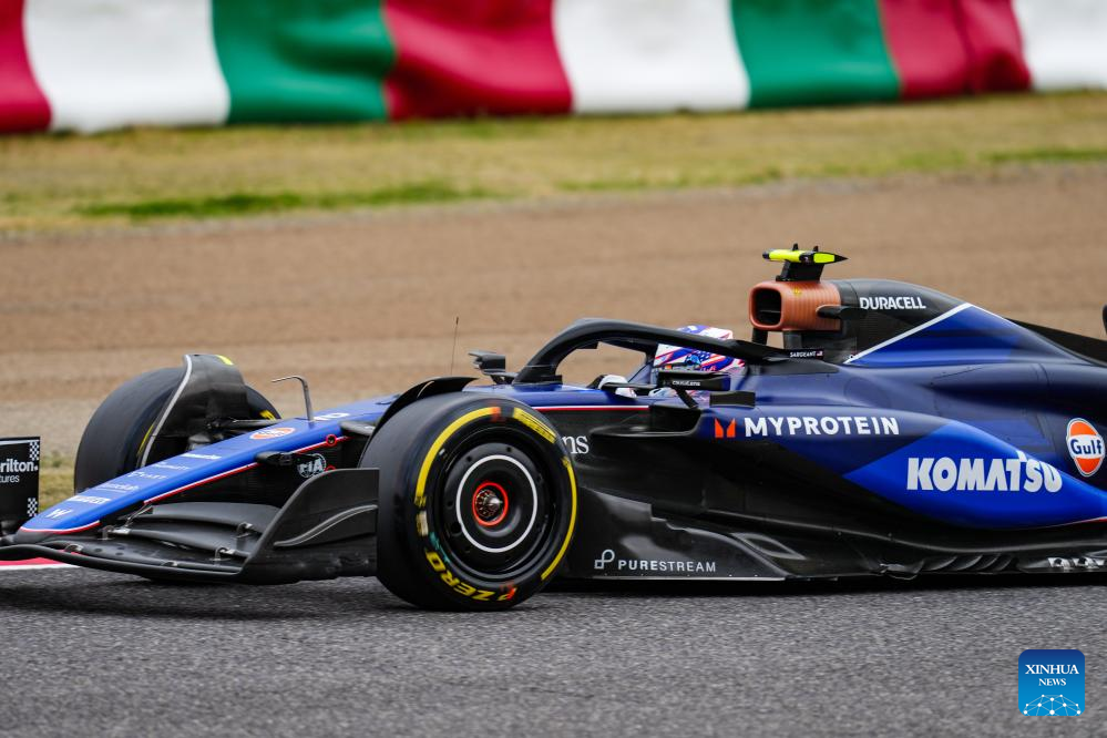 Williams' driver Loggan Sargeant of the United states drives his car during the practice session of Formula One Japanese Grand Prix in Suzuka, Japan, April 5, 2024. (Xinhua/Zhang Xiaoyu)