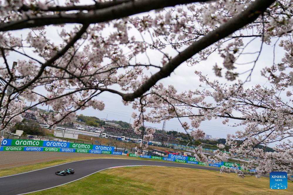 Aston Martin's driver Lance Stroll of Canada drives during the practice session of Formula One Japanese Grand Prix in Suzuka, Japan, April 5, 2024. (Xinhua/Zhang Xiaoyu)