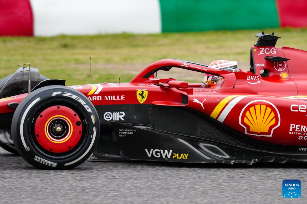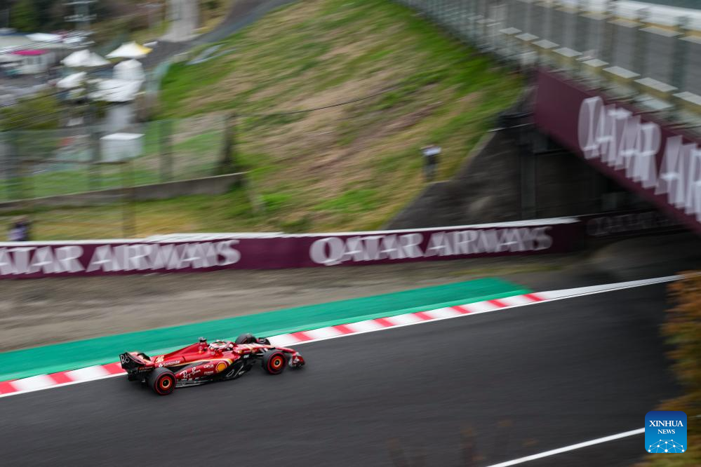Ferrari's driver Charles Leclerc of Monaco drives his car during the practice session of Formula One Japanese Grand Prix in Suzuka, Japan, April 5, 2024. (Xinhua/Zhang Xiaoyu)