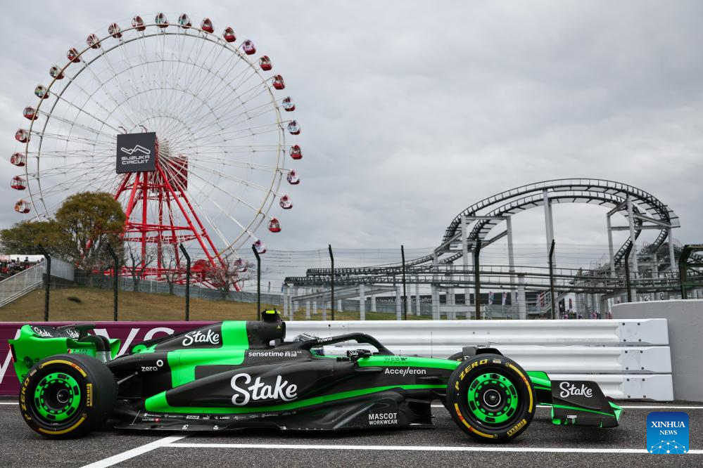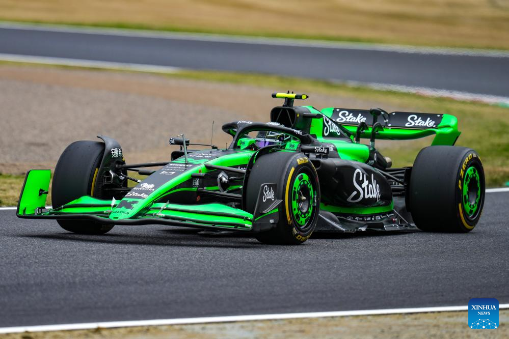 Kick Sauber's Valtteri Bottas of Finland drives his car during the practice session of Formula One Japanese Grand Prix in Suzuka, Japan, April 5, 2024. (Xinhua/Zhang Xiaoyu)