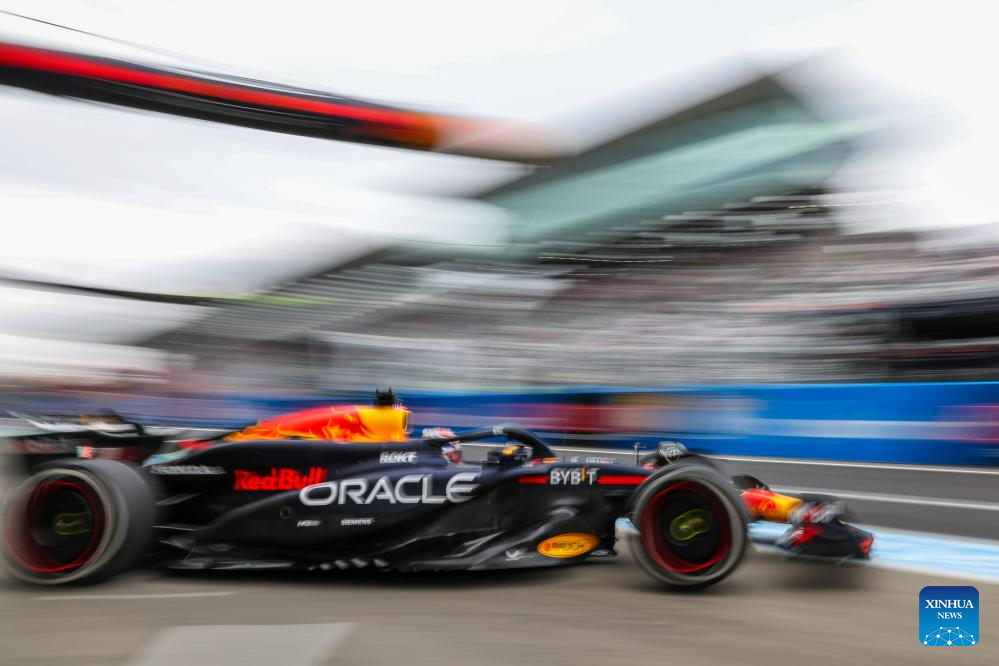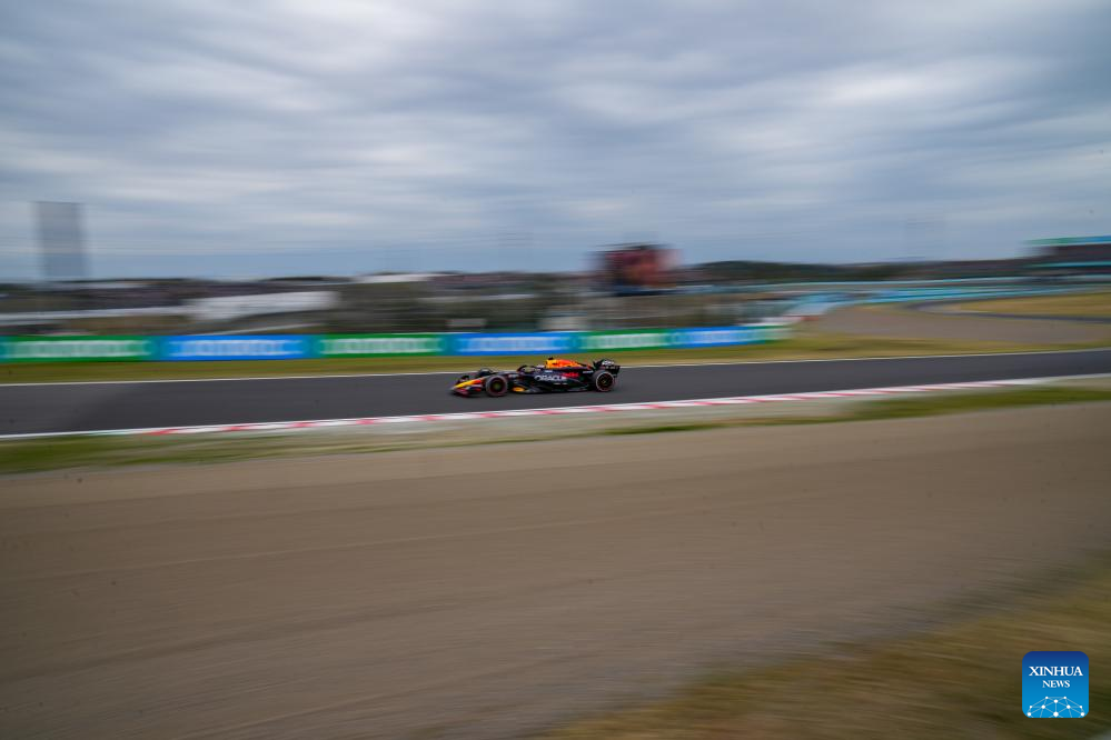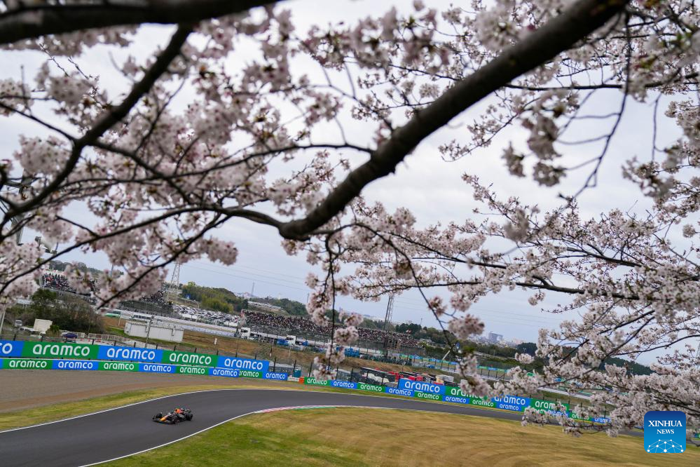 Red Bull Racing's driver Max Verstappen of the Netherlands drives his car during the practice session of Formula One Japanese Grand Prix in Suzuka, Japan, April 5, 2024. (Xinhua/Zhang Xiaoyu)