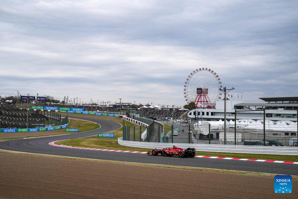 Ferrari's driver Carlos Sainz of Spain drives his car during the practice session of Formula One Japanese Grand Prix in Suzuka, Japan, April 5, 2024. (Xinhua/Zhang Xiaoyu)