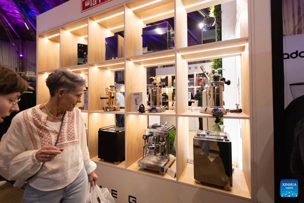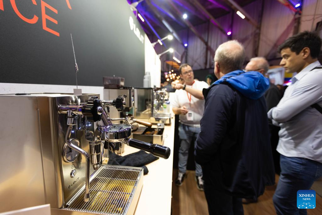 Coffee machines are on display at the Amsterdam Coffee Festival in Amsterdam, the Netherlands, on April 5, 2024. (Photo by Sylvia Lederer/Xinhua)