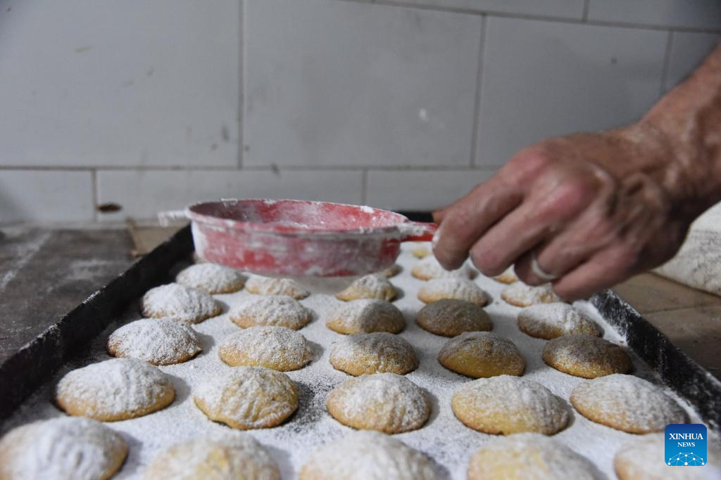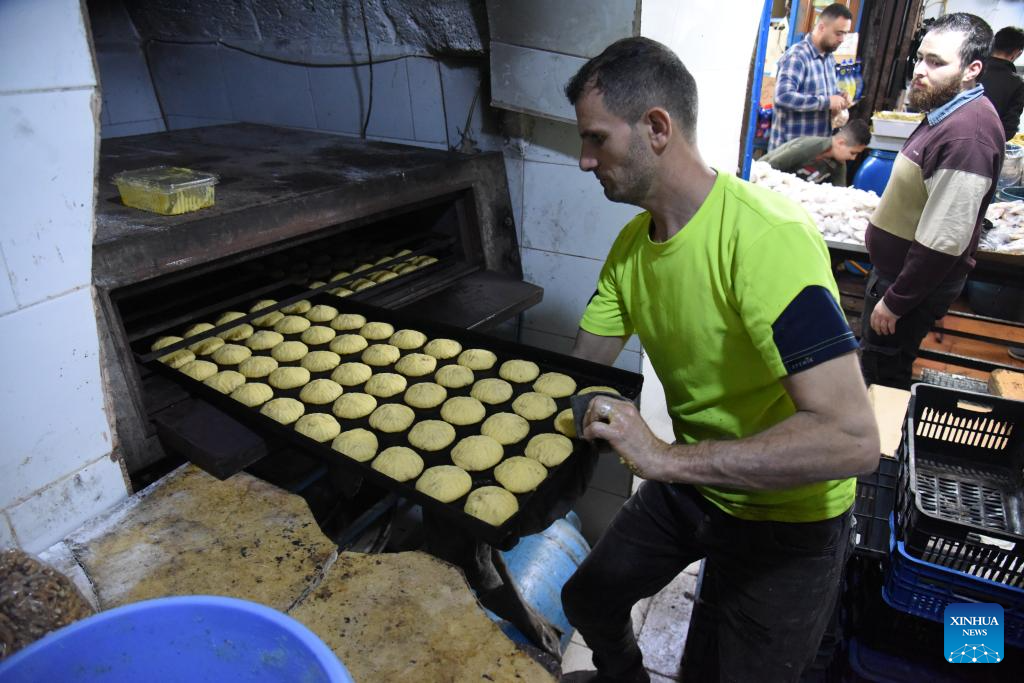 A vendor prepares traditional Eid sweets during Ramadan, in Tripoli, Lebanon, April 8, 2024. (Photo by Khaled Habashiti/Xinhua)
