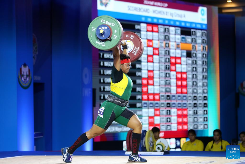 Eileen Cikamatana of Australia competes in the women's 81kg category at the International Weightlifting Federation (IWF) World Cup in Phuket, Thailand, April 9, 2024. (Xinhua/Wang Teng)