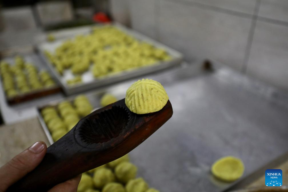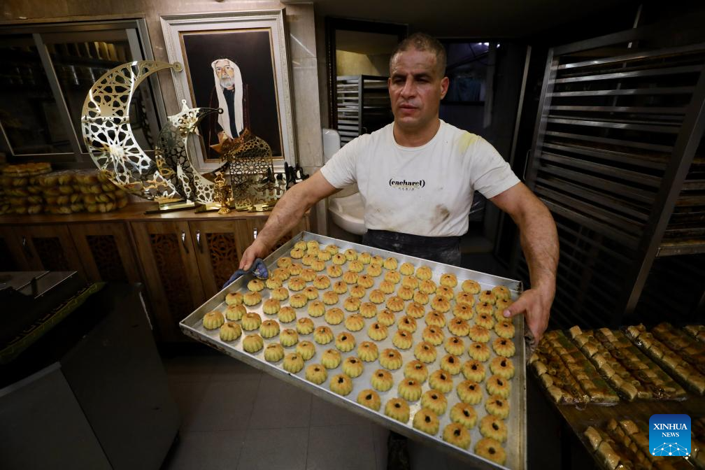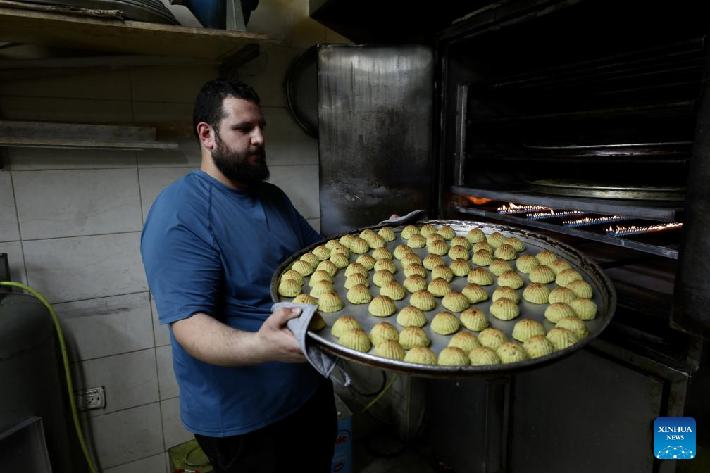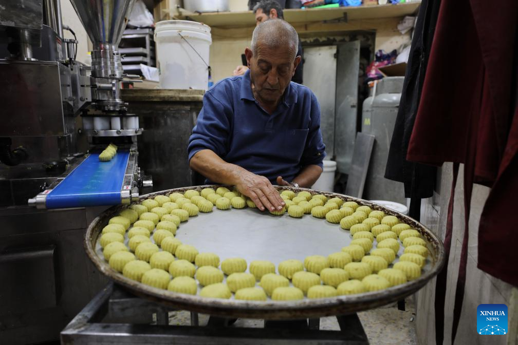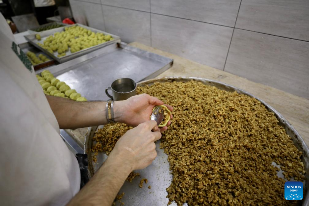 A worker makes traditional sweets in preparation for the upcoming Eid al-Fitr in Jerusalem's Old City, on April 9, 2024. (Photo by Jamal Awad/Xinhua)