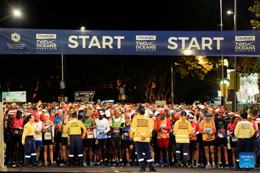 Participants compete during the 2024 Two Oceans Marathon in Cape Town, South Africa, April 13, 2024. The Two Oceans Marathon, which is run against a backdrop of spectacular scenery through the Cape Peninsula, has earned a reputation as "the world's most beautiful marathon." (Photo by Ian Landsberg/Xinhua)