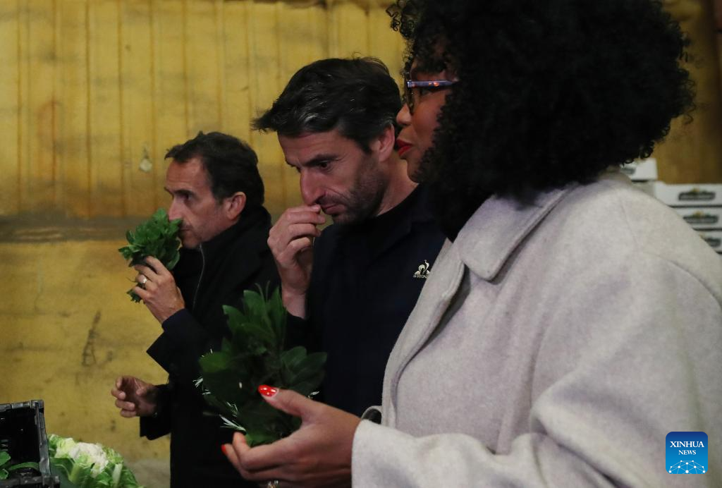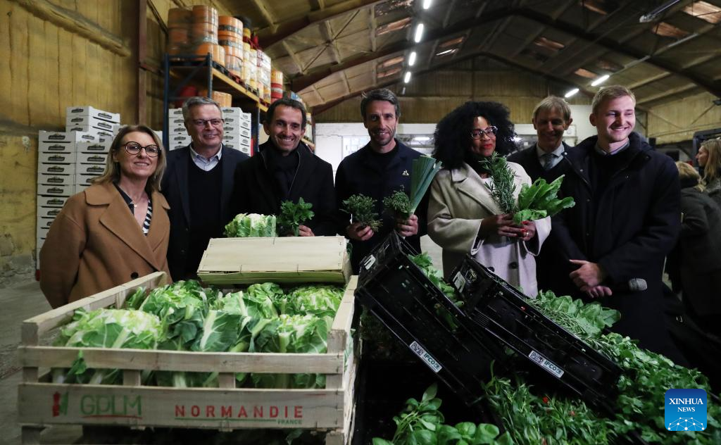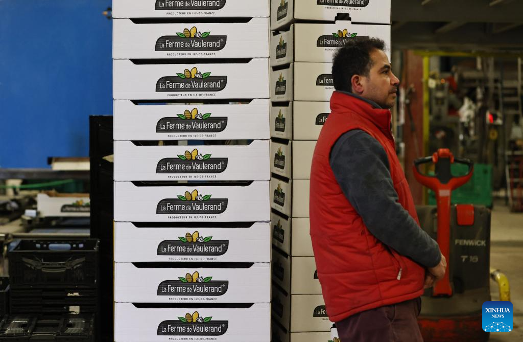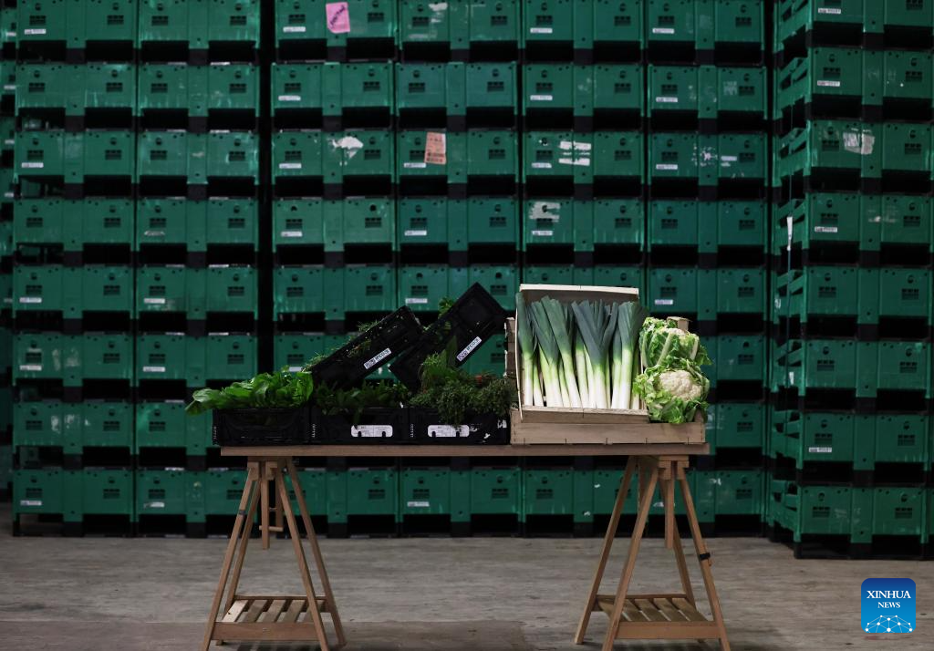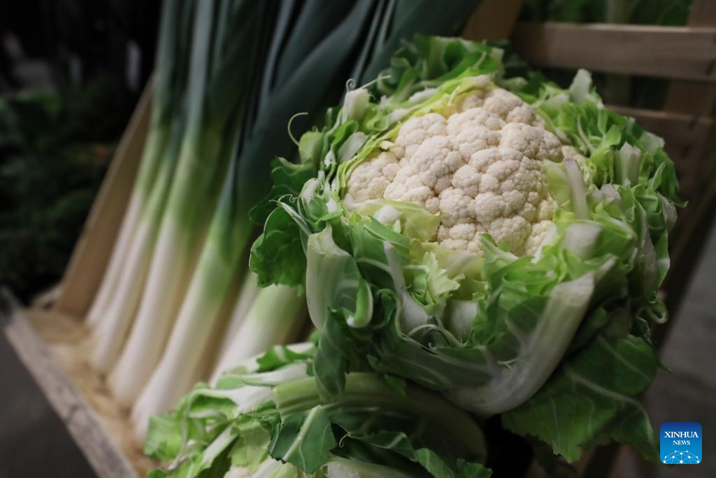 Vegetables are seen at the Vaulerand potato farm in Villeron, near Paris, France, April 18, 2024. French supermarket giant and Paris 2024 sponsor Carrefour presented its strategy to provide fresh produce for athletes at the Olympic Village during the Paris 2024 Olympic and Paralympic Games on Thursday. (Xinhua/Gao Jing)